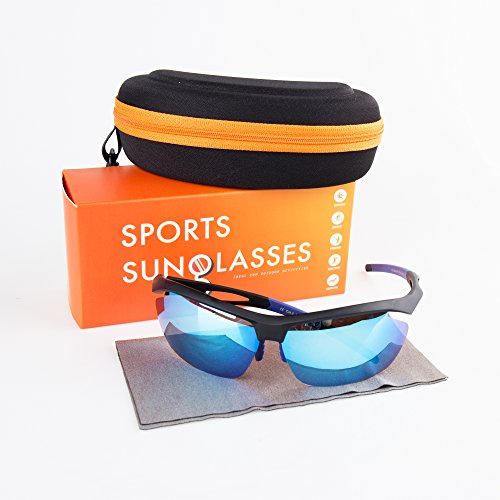 Polarized Sports Sunglasses, Quntis 100%UV Protection Unbreakable Glasses for Men or Women Cycling Baseball Riding Driving Running Golf and More Outdoor Activities - Superlight TR90 Frame (Blue Lens)