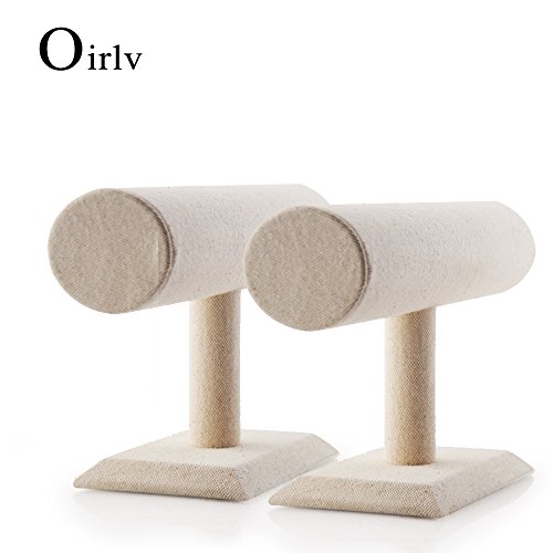 Jewelry Stand Oirlv Linen Two Pack T-Bar Jewelry Tower Bracelet Watch Necklace Stand Jewelry Display Holder Organizer