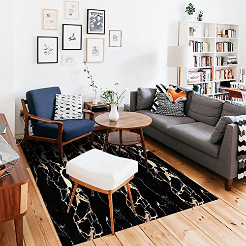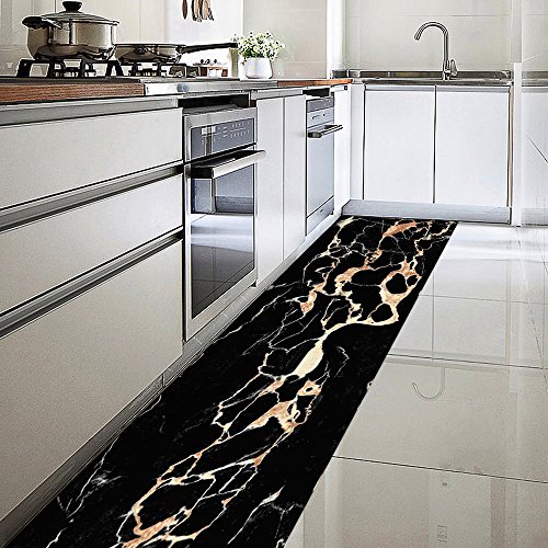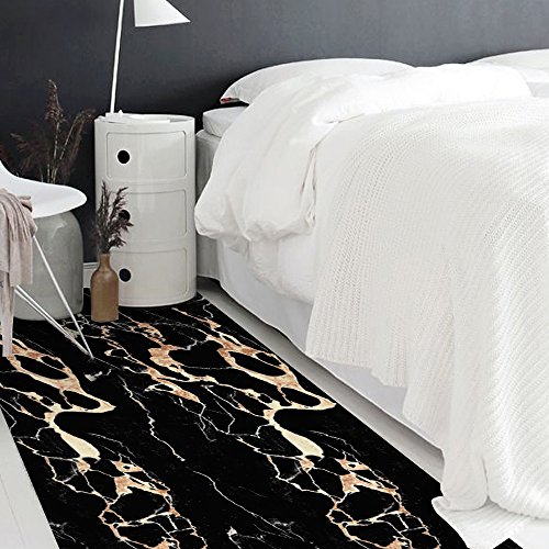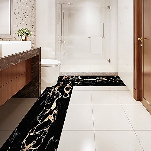 ChasBete Anti-Slip Mat Sticker Waterproof Removable Floor Stickers Thin PVC Floor Decor Decal for Kitchen Bath Shower Door Mat, 12’’ x 142’’ Black Marble