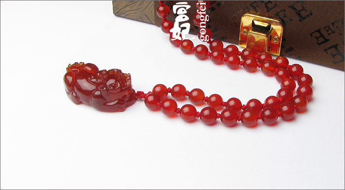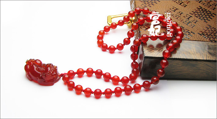 【商品材质】天然红玛瑙 貔貅为翘色双色玛瑙 红白相间
