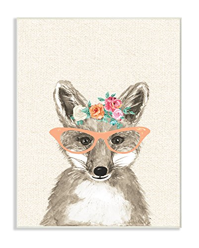Stupell Industries Woodland Fox with Cat Eye Glasses Wall Plaque Art, 10 x 0.5 x 15, Proudly Made in USA