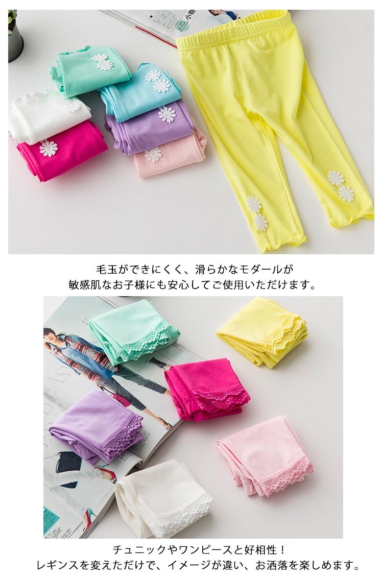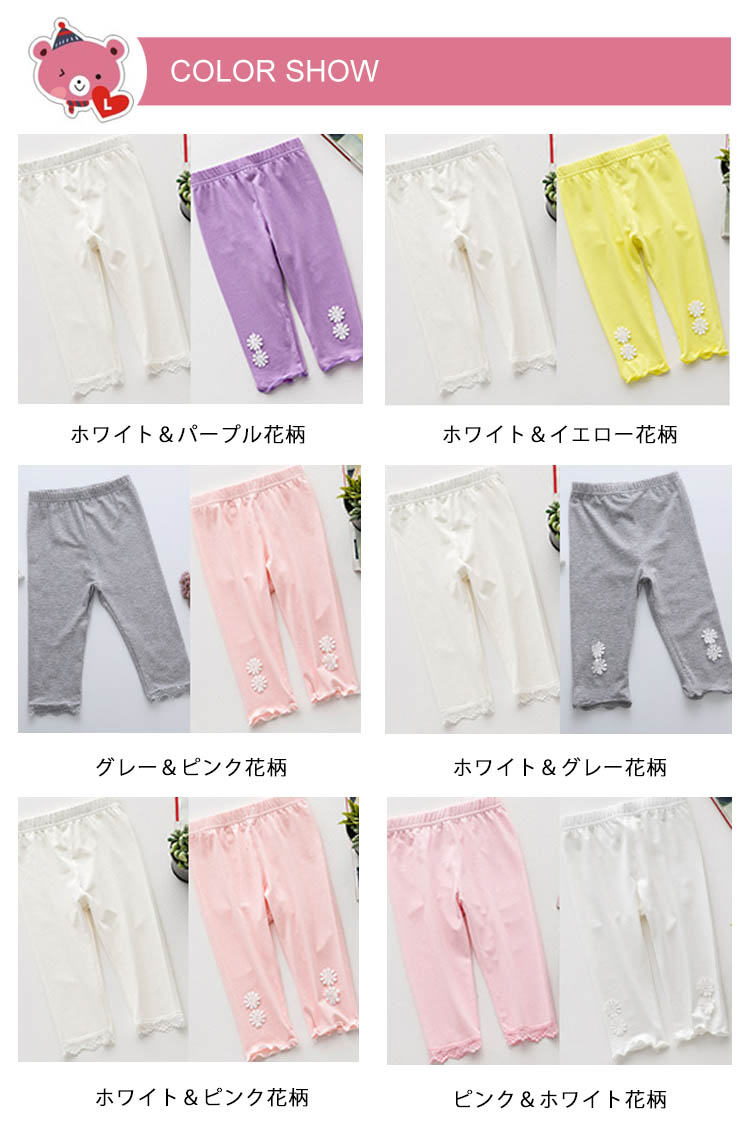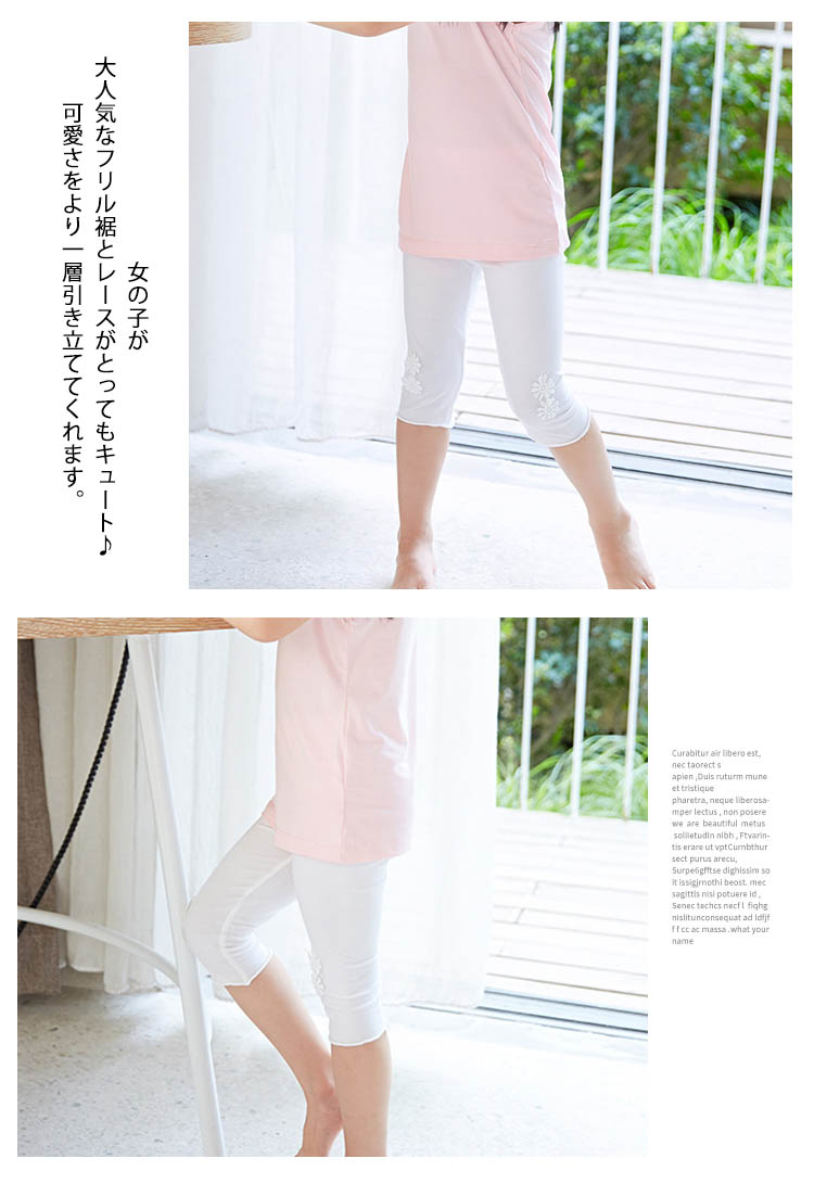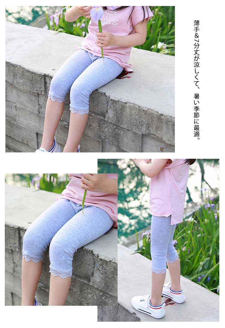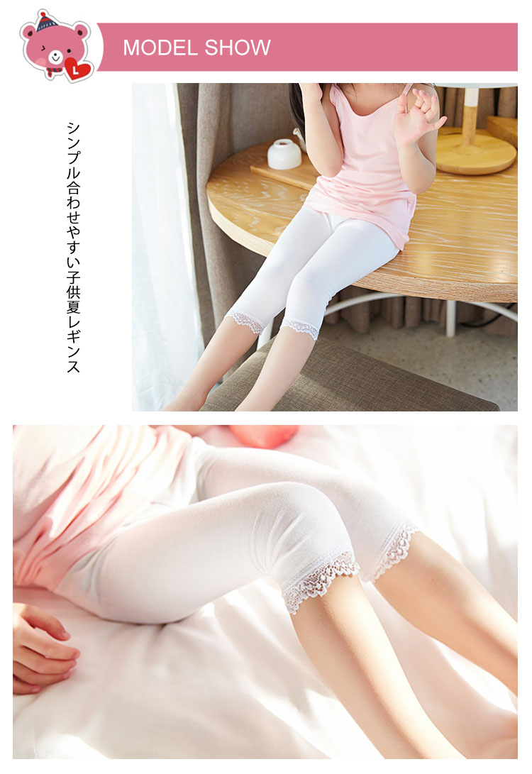 | シンプル合わせやすい子供夏レギンス薄手&7分丈が涼しくて、暑い季節に最適。女の子が大人気なフリル裾とレースがとってもキュート♪可愛さをより一層引き立ててくれます。綿95%、ポリウレタン5%の上質生地が、通気性優れた上、伸縮性もバツグンのび?のび?ストレスフリー毛玉ができにくく、滑らかなモダールが敏感肌なお子様にも安心してご使用いただけます。チュニックやワンピースと好相性!レギンスを変えただけで、イメージが違い、お洒落を楽しめます。 | |