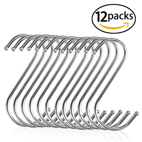 - Hook ends are flat, not pointed, For added safety. Package including: 12 PCS Silver Color Stainless Steel S Hook Metal Hooks.