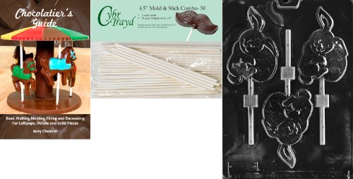 Cybrtrayd 'Bunny Holding Egg Lolly' Easter Chocolate Candy Mold with 50 4.5-Inch Lollipop Sticks and Chocolatier's Guide