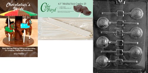 Cybrtrayd 'Golf Ball Lolly' Sports Chocolate Candy Mold with 25 4.5-Inch Lollipop Sticks and Chocolatier's Guide