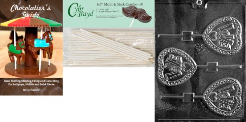 Cybrtrayd 'Love Heart Pop' Valentine Chocolate Candy Mold with 50 4.5-Inch Lollipop Sticks and Chocolatier's Guide