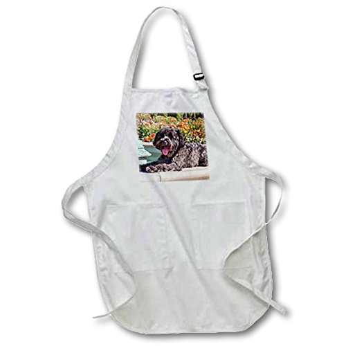 3dRose Schnauzer Lying on Fountain Edge in Rose Garden, Mr and Pr, - Full Length Apron, 22 by 30-Inch, White, with Pockets (apr_207520_1)