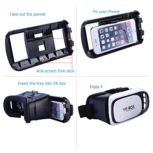 -. Binding : Electronics -. Brand : Vemico -. EAN : 0711765621255 -. Feature : Wide Compatibility : Comfortably fits iPhones, Android phones, Windows phones with a screen size from 4.0 to 6.0 inches / Anti-dust design: the front cover with slid feature can stop dust going into the cardboard of 3D device, if there is any smudginess, you can slid and open the cover to clean it, the cover also help you keep the light out, so you can have a better experience of virtual world / Comfort design with sponge area - Extemely soft and thick foam is perfect long time use. When you wear it for a long time,there won't make you dizziness / Virtual Reality Apps : Check out these VR apps in Google Play store, Apple App store, and immerse in the exciting world of VR / Adjustable Pupil distance - Customize your optical axis by adjusting position of the spherical resin lens. This allows for individuals with various pupil distance to optimize the clarity of their VR experience. Study have also shown a correct pupil distance relative to your VR lens will further reduce simulator sickness or VR sickness. There will be 2 slider on the top of your glasses which allows for left and right eye distance adjustment. -. Label : Shenzhen Vertue Tech Co., Ltd -. Manufacturer : Shenzhen Vertue Tech Co., Ltd -. MPN : Vemico007 -. PackageQuantity : 1 -. PartNumber : Vemico007 -. ProductGroup : Speakers -. ProductTypeName : CE_ACCESSORY -. Publisher : Shenzhen Vertue Tech Co., Ltd -. Studio : Shenzhen Vertue Tech Co., Ltd -. Title : Vemico TM VR BOX Virtual Reality 3D Glasses Focal Eye Pupil Distance Resin Lens For 4.0 to 6 inch Smartphones IOS Android Iphone 6 iphone 6 plus Samsung Galaxy S6 -. UPC : 711765621255
