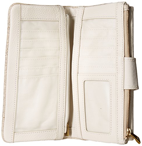 Interior details: 2 bill compartments, 11 credit card slots, 1 id window and 1 zipper pocket, under flap: 1 slide pocket
