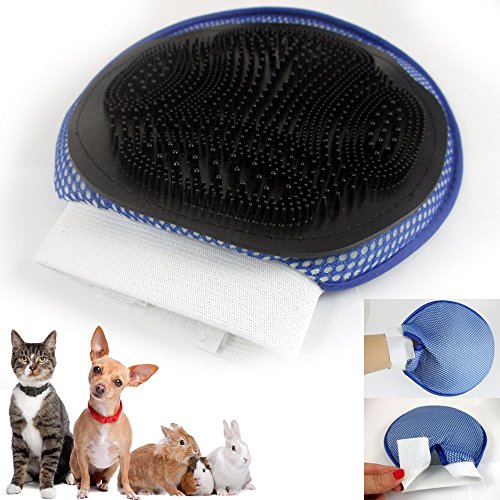 Studio : ATB Publisher : ATB Binding : Misc. Product Description 1 Cat Dog Rabbit Massage Groom Pet Bath Glove Brush Comb Handle Soft Scrubber Glove This Brush is very useful, the Pet grooming rubber moves dead scaly skin and easy to clean and disinfect, can be used for right or left handed people Ideal for all coat types, this pet grooming mitt features a comfortable, padded mitt with variously sized bristles on one side to gently lift away dirt and loose hair. Can be used wet or dry. For right or left handed. Measures approximately 8" x 7". * Promotes healthier hair. * Removes unwanted loose hair quickly easily. * Ideal for grooming cats dogs. * Perfect for short, medium and long hair. * Lightweight. * Easy to wash.
