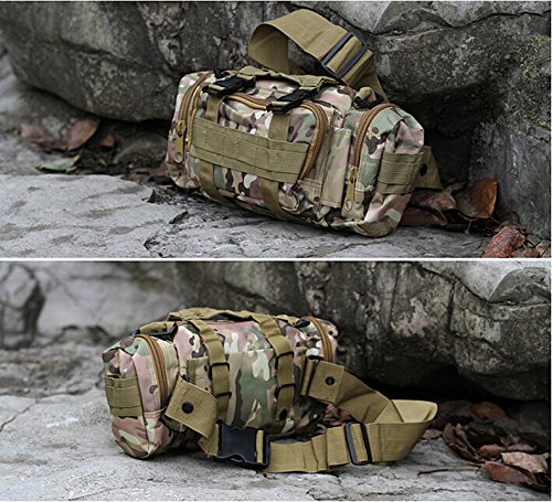 -. Feature : Size: 12 x 6 x 5.5-Inch / Made of High-density Oxford nylon fabric (900D-more stronger than any other ones in the market 600D), light weight, durable, wear-resisting, scratch resistant, waterproof, water splashed waterproof lining, zipper tested Million times is still smooth / Small and portable, Compact 4-Way using: Waist Pack, Single Shoulder Bag, Messenger/Chest Pack, Back Sling or Hand Carry; Compatible with MOLLE Duffel Pouch with 4 Zippered Compartments as a Accessory bag. / It is great and nice for Indoor and Outdoor uses Including Everyday Carry,Skating, Skiing, Camping, Hiking, Hunting, Sports Events, Fishing, mountain climbing, running, School Supplies, Tools, Digital Still Camera (DSC) Etc. / Free get 6 climbing buckle or fastner, which is Hard aluminum alloy manufacture,he use of D type aluminum alloy polishing process, waterproof, wear-resistant, high strength, durable. Can be hung in the backpack, key rings, and the need for the place, and can be used for tents, ropes and other connections, fashion and practical; Upgrade version of the use of screw cap fastening design, safe and practical, lock up to ensure that the emergence of falling!