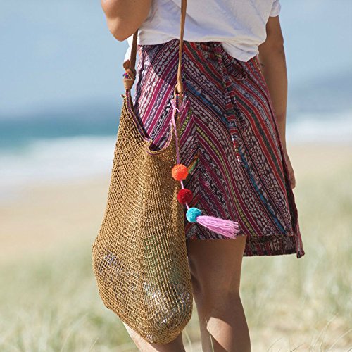 A removable natural leather strap is knotted into the woven design, and allows for adjustment to the ideal length.
