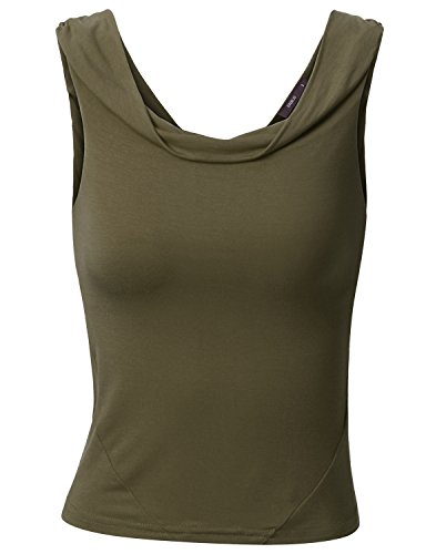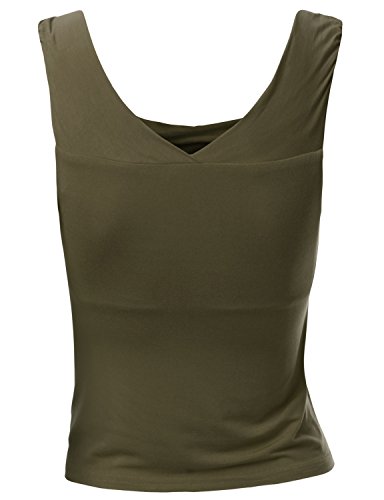 - Title : Doublju Womens Draped Neck checked pana Olive checked Crop Top,XL