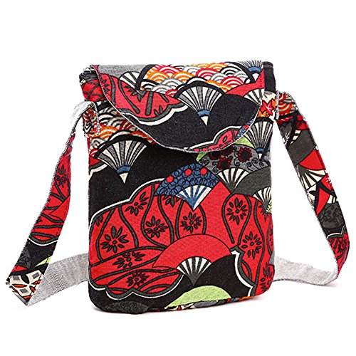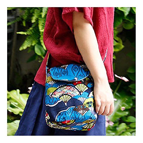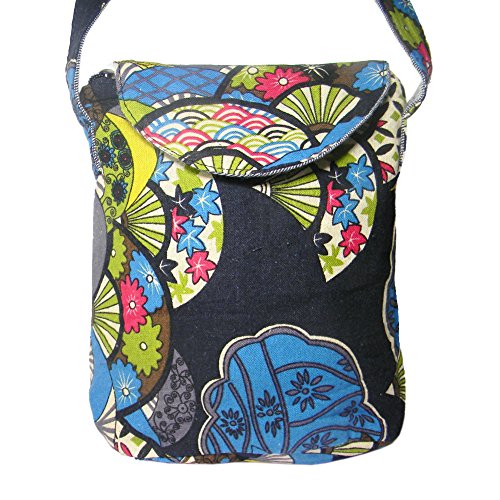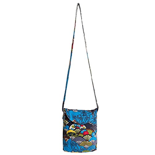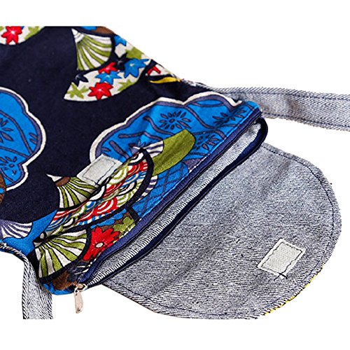 Women's Thai Style Cotton Hippie Hobo Sling Large Crossbody Bag Messenger Purse Floral Print Handbags (Blue )