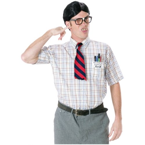-. Binding : Apparel -. Brand : Fun World -. ClothingSize : One Size Fits Most -. Color : Multi -. Department : mens -. Feature : Includes: Taped Glasses, Wig, Pocket Protector, Buck Teeth, Paper Shredded Tie -. Label : Fun World -. Manufacturer : Fun World -. MPN : 90159 -. PackageQuantity : 1 -. PartNumber : 90159 -. ProductGroup : Apparel -. ProductTypeName : ACCESSORY -. Publisher : Fun World -. Size : One Size -. Studio : Fun World -. Title : Adult Nerd Costume Kit