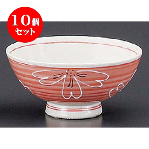 원본상품명: 10個セット 飯碗(磁器) 赤?一珍大花中平茶碗 [118 x 58mm] 和食器 料亭 旅館 ?食店 業務用
