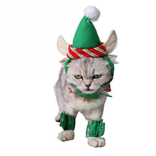 -. Title : BUYITNOW Christmas Pet Costume, Santa Elf Hat with Ears Neck Collar Cuffs