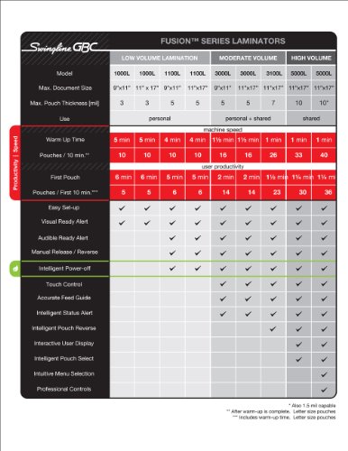 3100L 12 inch laminator specializes in fast, user friendly lamination with touch buttons and jam recongition; ideal for moderate use, this machine provides high quality lamination to keep important documents protected; fast and productive 1 minute warm-up