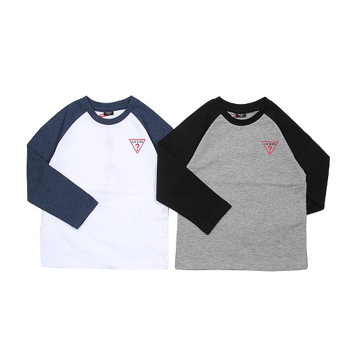 남아 배색 라글란티(남아) - 화이트, 멜란그레이 두가지 컬러로 구성된 라글란티입니다. - 화이트+블루그린, 멜란그레이+블랙의 컬러 배색이 산뜻한 느낌을 줍니다. - 가슴에 게스 오리지널 삼각 나염으로 포인트를 주었습니다. - 20수 싱글 원단을 사용하여 봄에 착용하기에 좋습니다. - 베이직한 아이템으로 다양한 하의와 매칭하여 코디할 수 있습니다.