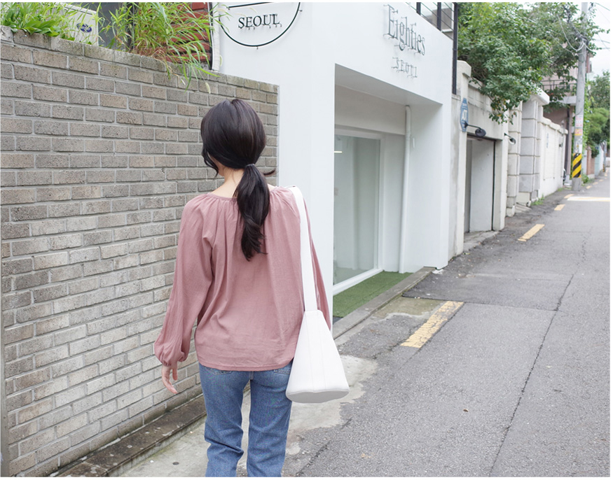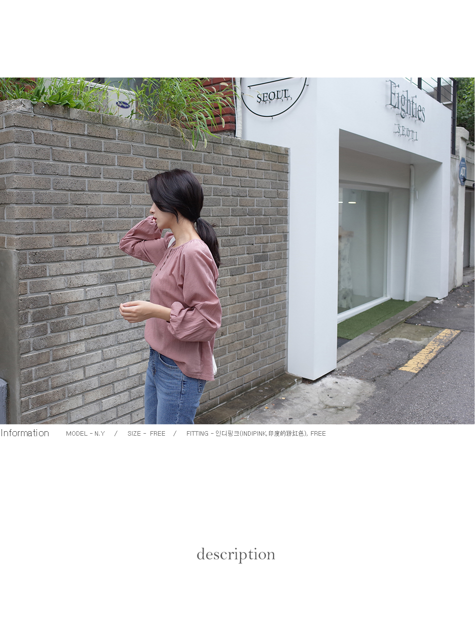 넥라인의 셔링덕분에 좀더 아방한 핏을 만들어주어