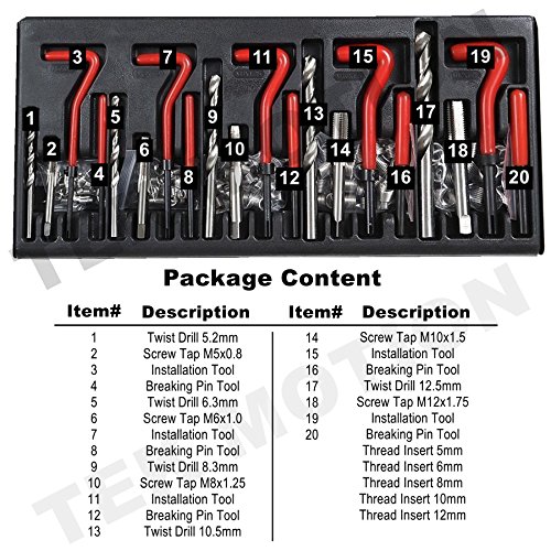 Tek Motion 131 pc Stripped Thread Rethread Helicoil Repair Kit Metric M5 M6 M8 M10 M12
