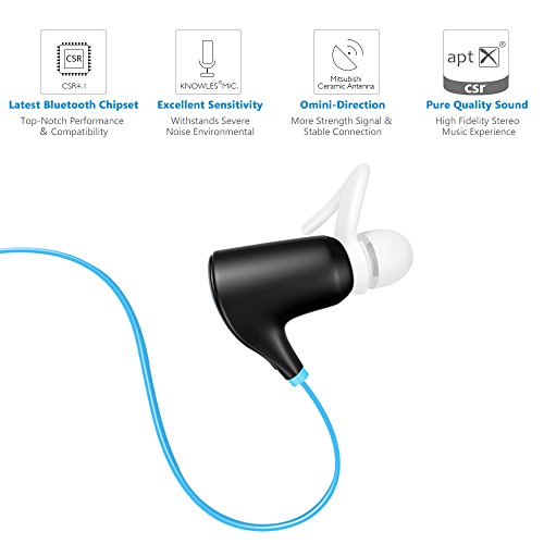 -. Feature : EASY to USE BLUETOOTH EARBUD. Compatible with all bluetooth devices. Pairing only takes up seconds. Mitsubishi Ceramic Antenna for steady bluetooth signal. One multi-function panel allows you to adjust the volume, pause, select songs and answer calls completely effortlessly. Great wireless earbuds accessories for Apple iPhone 6s Plus, iPhone 6s, iPhone 5s, Samsung and more. / Hi-Fi STEREO SOUND. With apt-x audio decode technology, it provides pure, CD grade sound quality that outclass other wireless earbuds in this P.R.Ice-range. Earbuds with mic, built-in HD mic from Knowles, with CVC6.0 noise cancellation, intelligently filter ambient noise while you are answer call. / LISTENING MORE. With Bluetooth 4.0 built-in, it increases the battery life even better, giving you extra hours of listening in your commute or daily usage. One single charge provides up to 6 hours music time, 8 hours talking time and 180 hours standby time. / SUPERBLY COMFORTABLE. Come with 3 different sizes of comfort earbuds & earhooks that ensure you with perfect fit. Designed to exude that perfect mix between fashion and comfort. Coated with exclusive blue, unique and eye-catching. / WARRANTY GUARANTEED. Enjoy our 12-month worry-free customer services.Your satisfaction is our goal. Why not Click and order it NOW!