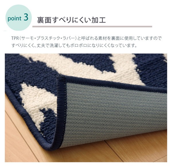 【商品名】キッチンマット 『ベイク』 ネイビー 約65×270cm