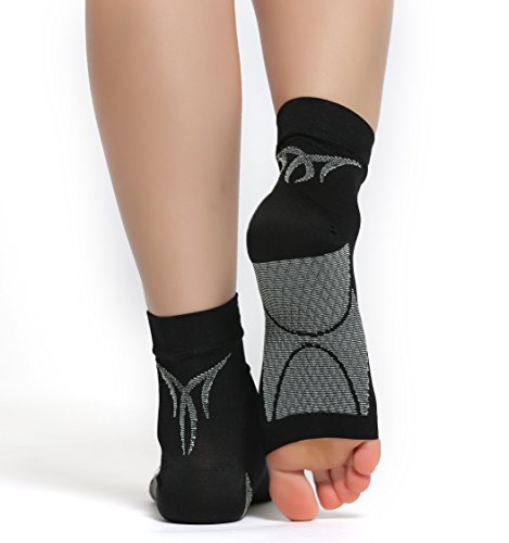 COMFORTABLE DESIGN - Toe-less foot compression sleeves wick sweat away from your skin to keep your feet dry and cool; Can be worn under athletic socks or fashion socks.