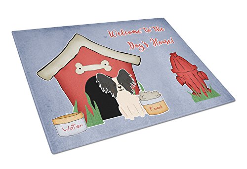 Caroline's Treasures BB2830LCB Dog House Collection Papillion Black White Glass Cutting Board, Large, Multicolor