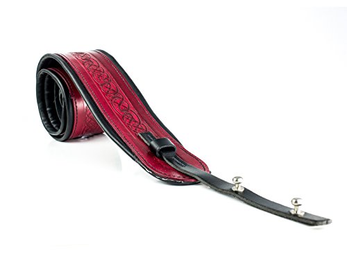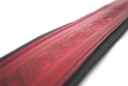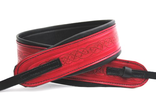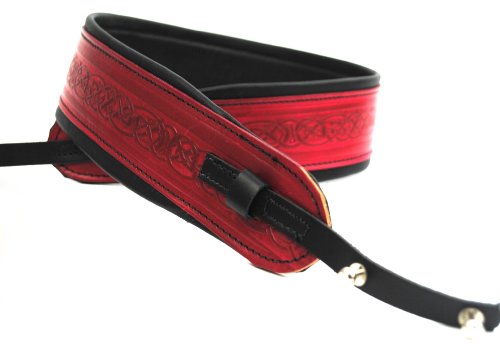 Uk Made Celtic Red Leather Padded Banjo Strap