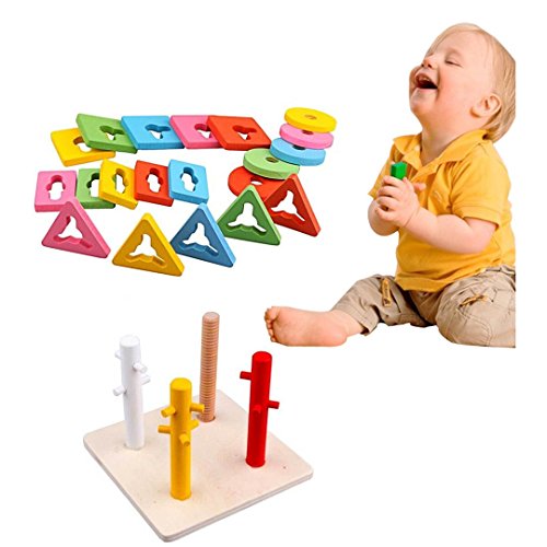 Toy set is with stacking rings and wooden base, Comes with 20 blocks and 1 stacking board.
