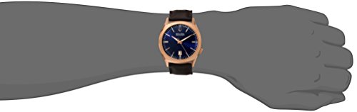 Stainless steel case back. Rich brown leather strap with adjustable buckle closure. Round face, 40mm. Three-hand analog display with quartz movement. Blue dial features gold-tone hands and hour markers, minute track, date display window, and Bulova detailing. Water resistant 3 ATM/30m. Imported.