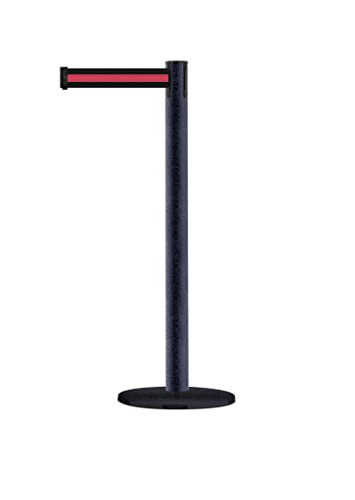 Tensabarrier 889U-89-89-STD-NO-S2X-C Black Wrinkle Post, 2" Wide, 7' 6" Length "Stripe Black & Red" Belt, 90" Length, Steel