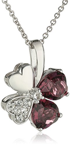 Sterling Silver Swarovski Amethyst Crystal and Clear Crystal Four Leaf Clover Pendant Necklace, 18"