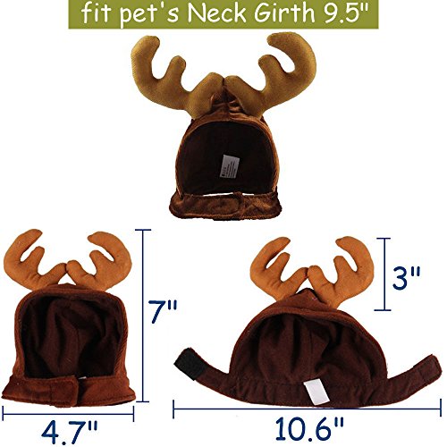 -. Feature : Free Size: fit pet's Neck Girth 9.5 inches / Made of polyester fibre, easy on and off with velcro closure, 3D sharp design adds charm to the antler, ideal for a great Christmas party / Perfect for Christmas, parties, special occasions, and photo shoots / A unique pet christmas hat to have your pet get as much attention as you at parties or holiday occasions. / Package included: 1*Pet Antler Hat + 1*Silver Metal Bolbove Keychain