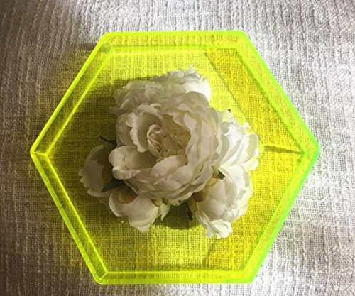 Hexagonal Acrylic Tray by AREA. Acrylic Decorative Tray (Neon Yellow)