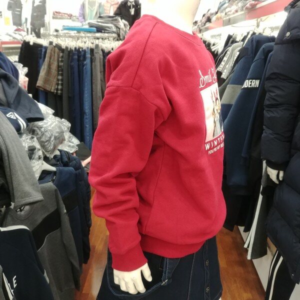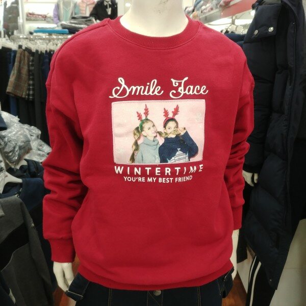 와인 칼라에 크리스마스 분위기를 내는 귀여운 소녀 그림 프린트가 돋보입니다.