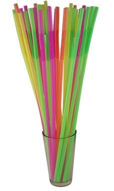 17" Long Flexible Neon Straws - Assorted Colors - Pack of 200
