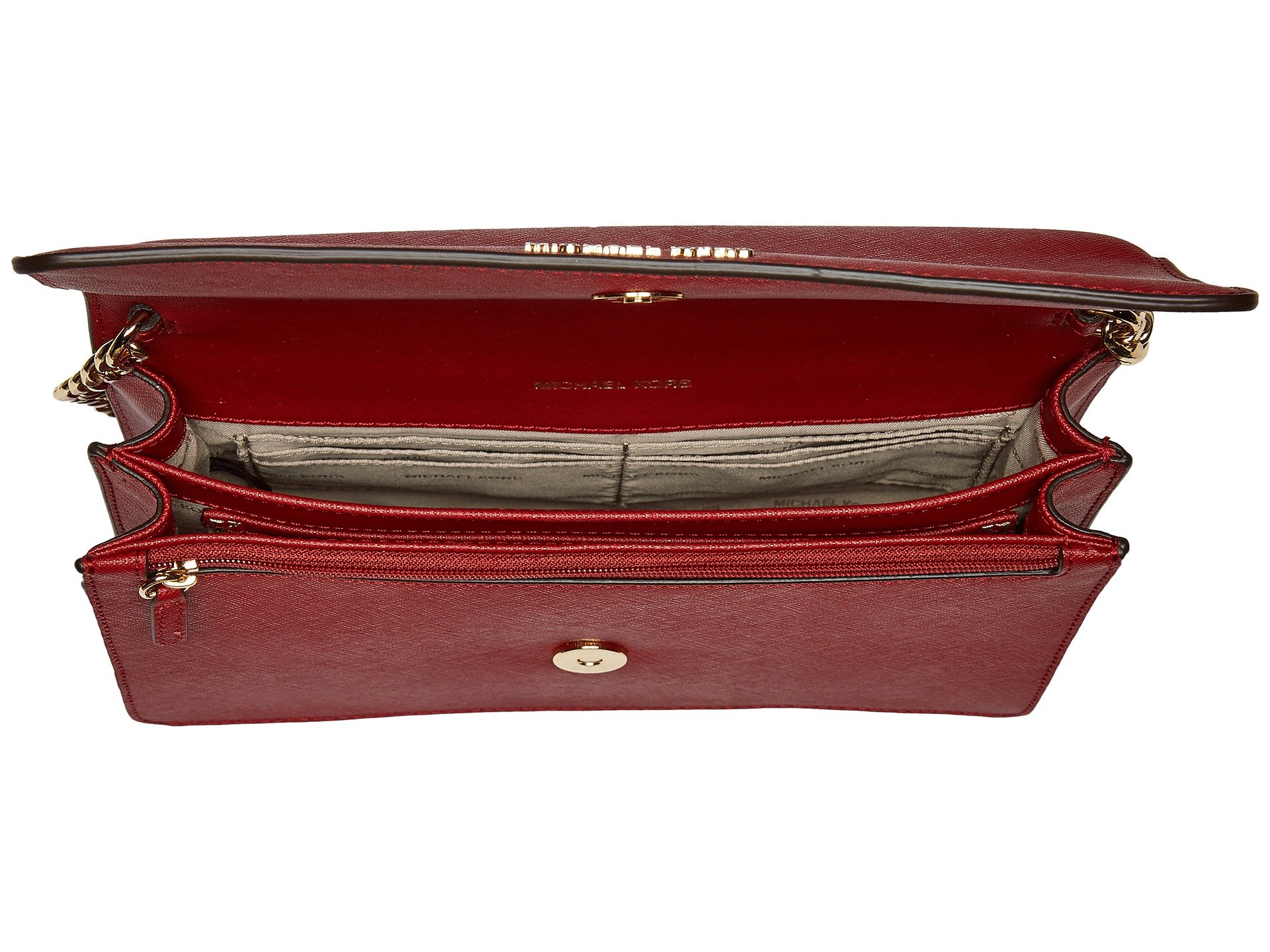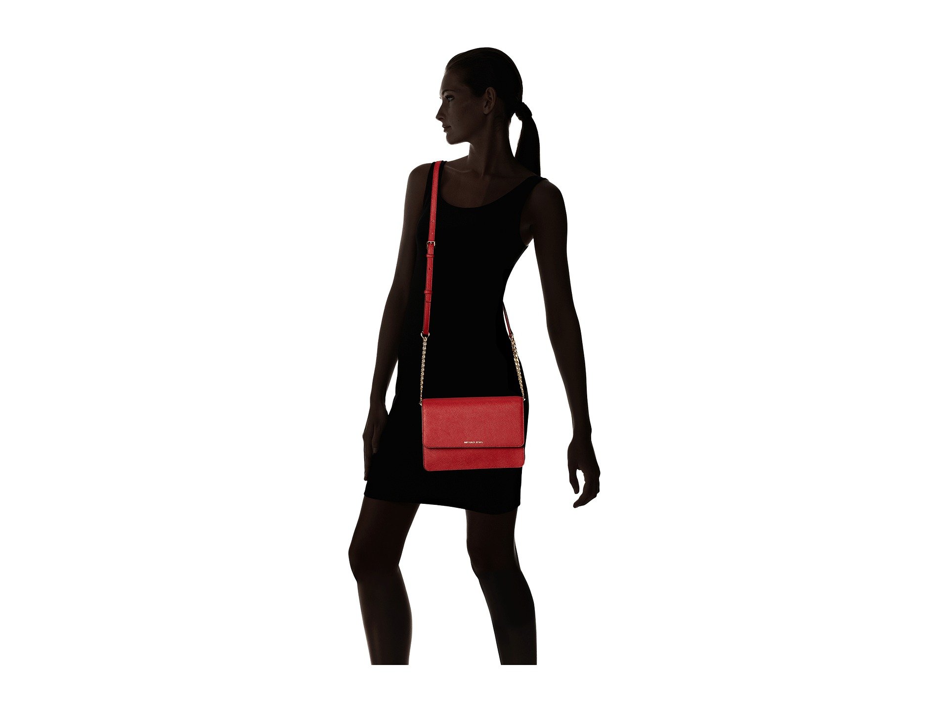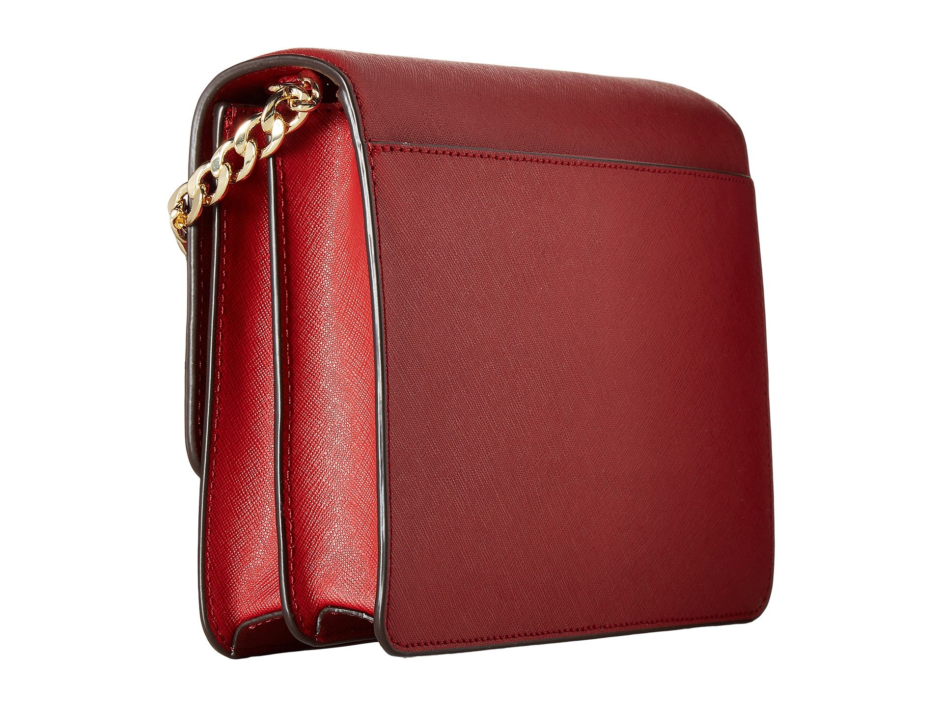 | Product Information SKU: #8900388Daniela is stylish and effortlessly chic, everyone will be lusting after your MICHAEL Michael Kors? arm candy.Made of saffiano leather.Magnetic snap closure.Adjustable crossbody strap with chain detail.Exterior back slip pocket.Signature logo hardware detail in front.Lined interior features one zip pocket and six credit card slots.Imported.This product may have a manufacturer's warranty. Please visit the manufacturer's website or contact us at warranty@support.zappos.com for full manufacturer warranty details.Please note, the hardware color and interior lining may differ from the color shown in the photo.Measurements: Bottom Width: 9 1?4 in Depth: 2 1?2 in Height: 6 1?2 in Strap Length: 50 in Strap Drop: 24 1?2 in Weight: 1 lb 4 oz |
