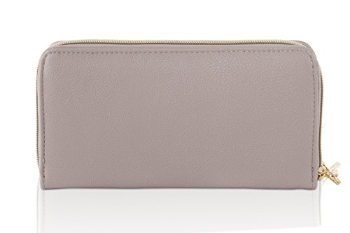 Features: 12 credit cards slots 2 currency Bill pockets, center divider Coin zipper pocket and ID window