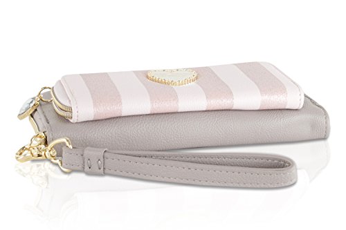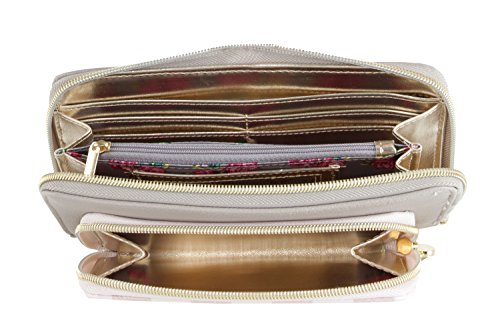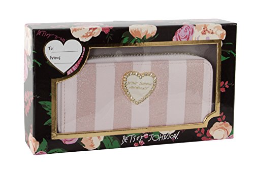 For the perfect blend of fashion and function, get the stylish Betsey Johnson Front pocket wristlet wallet. It's constructed of PVC printed Exterior, Front zip pocket with Betsey Signature hardware, removable wrist strap, The wallet features the practical storage of 2 bill pockets, center coin zip pocket, and 12 credit card slots.