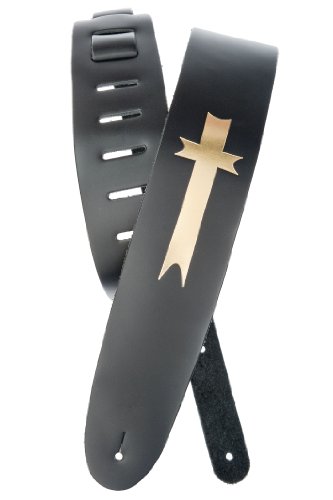 -. Feature : Cross design / Made from high-quality black leather / Provides maximum comfort for standing situations / Adjustable from 44.5 to 53" long / A great gift idea for any guitar player