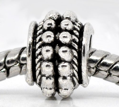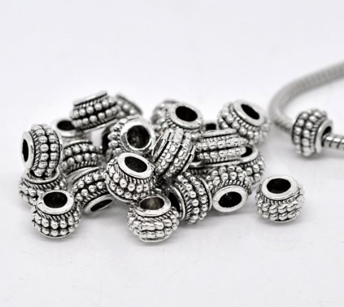 PEPPERLONELY Brand 50PC Antique Silver Dot Spacer Beads Fit European Bracelet 3/8 x 9/32 Inch ( 9MM x 7MM )