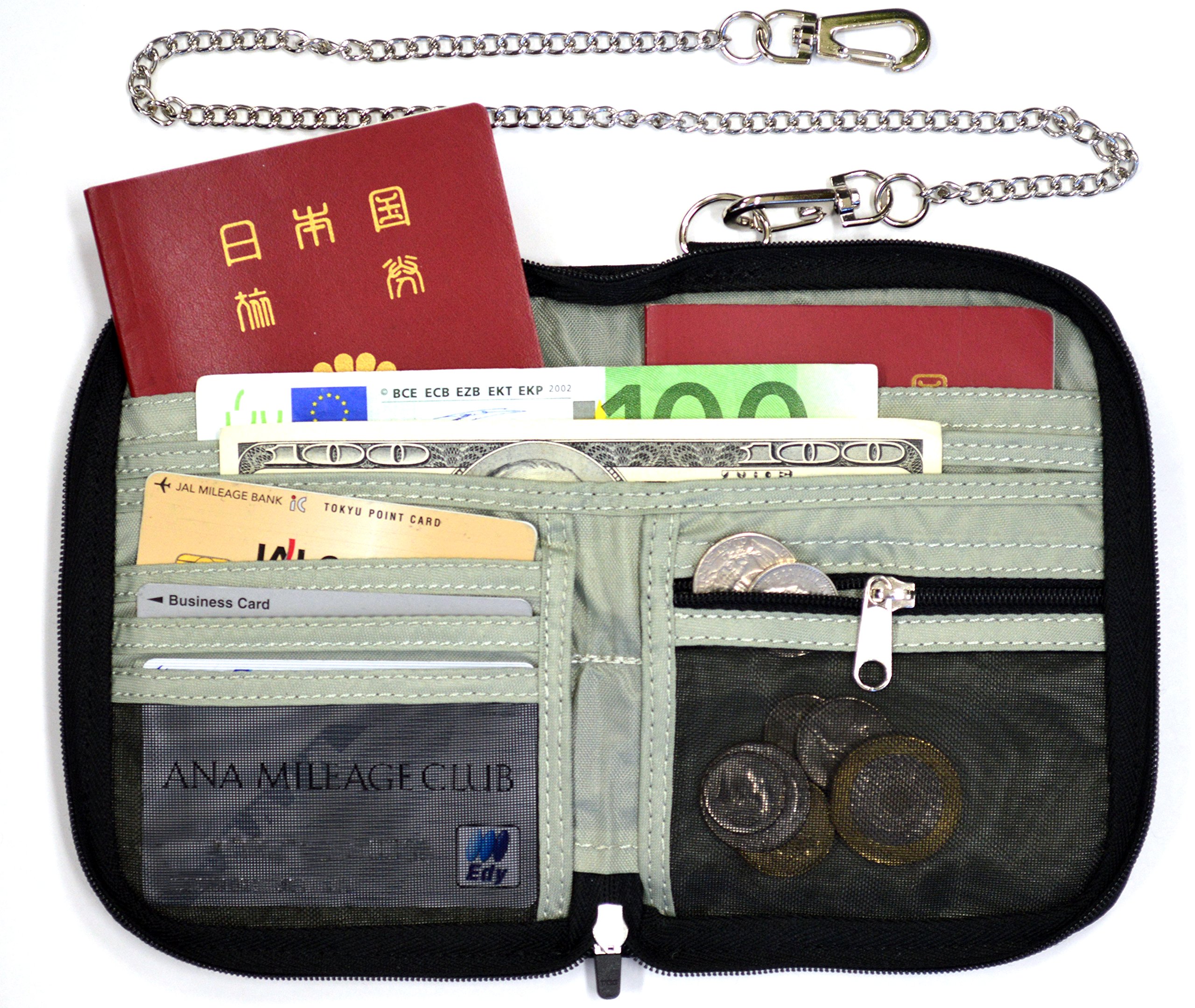 Travel wallet with chain.