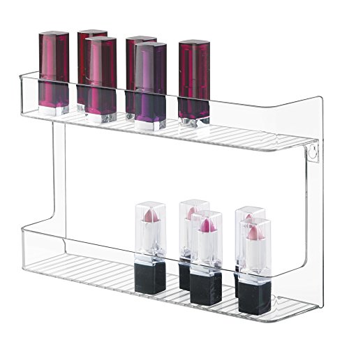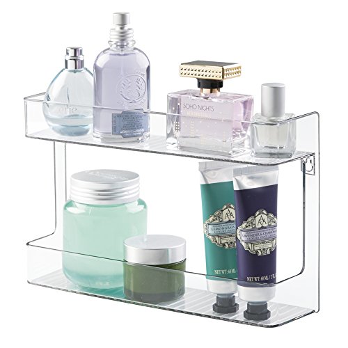 mDesign Wall Mount Cosmetic, Makeup, Beauty Product Storage Holder - 2 Shelves, Clear