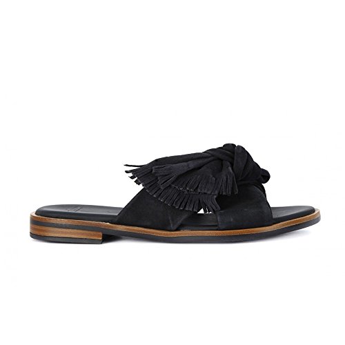 Product DescriptionBlack suede slipper with soft padded leather insole for pleasing comfort, leather welt and rubber outsole. Frau is a brand Made in Italy.0
