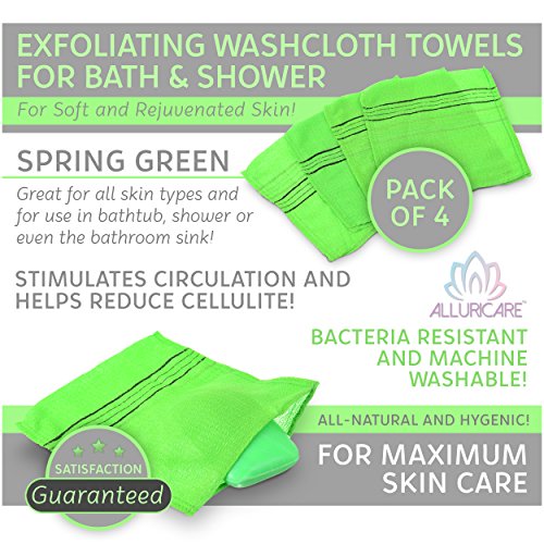 Asian Magic ™ Exfoliating Washcloth Towels for Bath & Shower - Reveal Your Youthful Glow! - 100% Allergy Free Viscose Rayon Deep Scrub Bath Sponges for Soft and Rejuvenated Skin - Works Better than Bath Brushes, Facial Polishes or Exfoliators - Satis