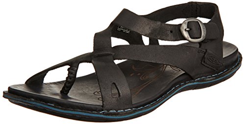 KEEN Women's Alman Ankle Strappy Sandals - casual, chic style that feels as good as it looks! Here's a strappy sandal you'll want to wear everyday. The supple, full-grain leather upper criss-crosses the foot in a flattering, casual style, and it's made with an adjustable buckle on the ankle strap for a just-right fit. Underfoot, the contoured polyurethane footbed softens your steps with cushioned comfort, while the traction rubber outsole helps keep you confident on your feet.Feature