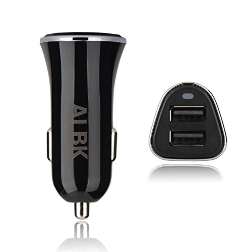 ALBK Car Charger,2.4A Dual USB Port Car Charger-Portable Travel Charger Rapid Car Charger Auto Adapter for iPhone 6 Plus/6/5S/5C/4,iPad,Ipod,Samsung,Smart Phone,Tablets (Black)