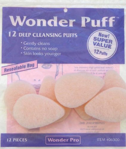 Wonder Puff Deep Cleansing Puffs #06300 12 Count - Super Value: Buy Wonder Products Cleansers - Wonder Puff is a deep cleansing facial sponge made of polyester fiber. When used with your favorite soap, it is excellent for removing dead skin cells and the dirt and oil trapped within this skin layer. Use as a part of your daily regimen, it helps give your skin a healthier and younger look. Now in a resealable bag.